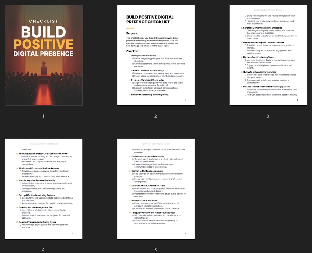 Discover simple steps to help your customers establish a positive digital presence, from defining their core values to building strong engagement with customers. This checklist gives them everything they need to maintain a consistent and trustworthy online image, handle reviews, and respond confidently during challenges.