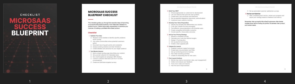 This checklist is an essential tool for your customers to launch a successful MicroSaaS business. It offers easy-to-follow steps for each phase of the process, helping them validate their ideas, build their product, and prepare for a successful launch.