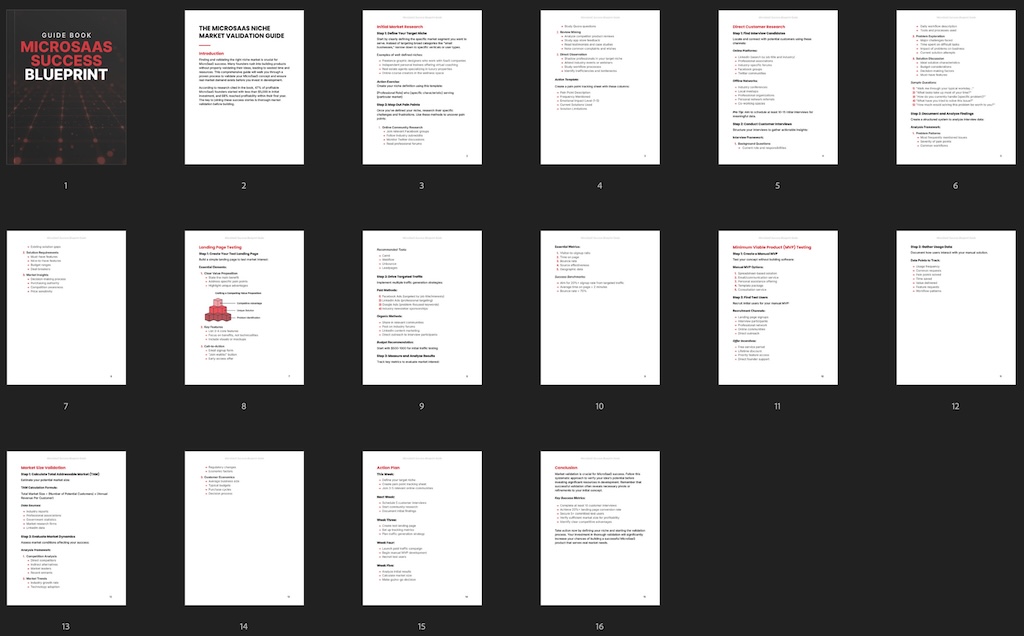 - Niche Market Validation: Learn how to identify profitable niches, conduct customer research, and validate ideas through landing pages and manual MVPs.