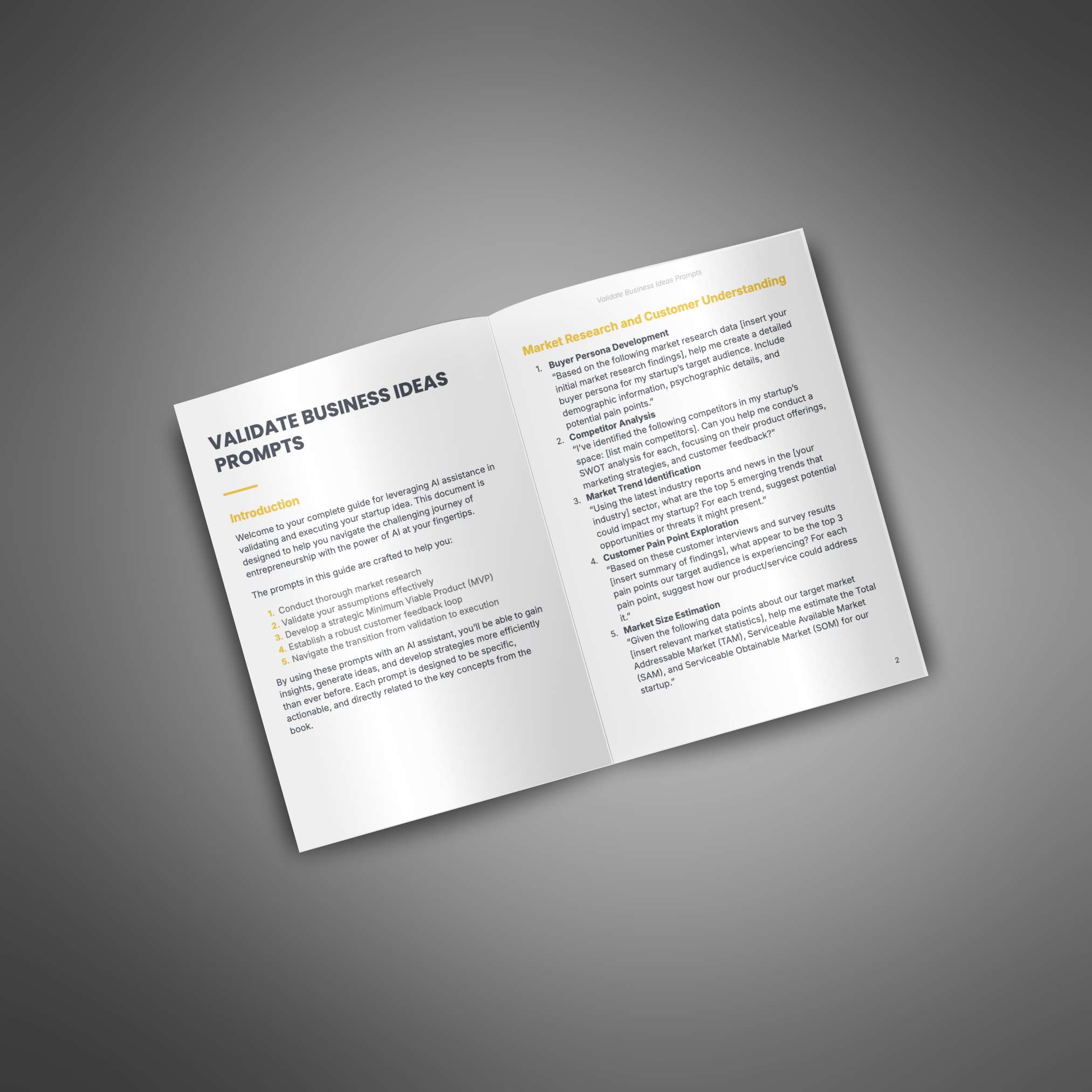 - Prompts for conducting thorough market research and identifying target audiences.